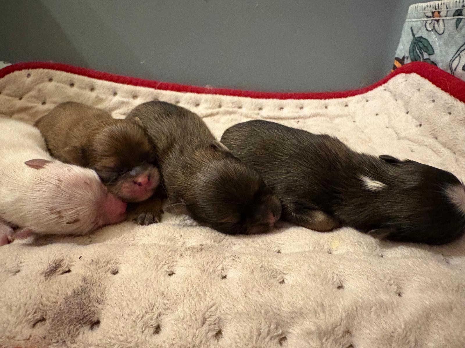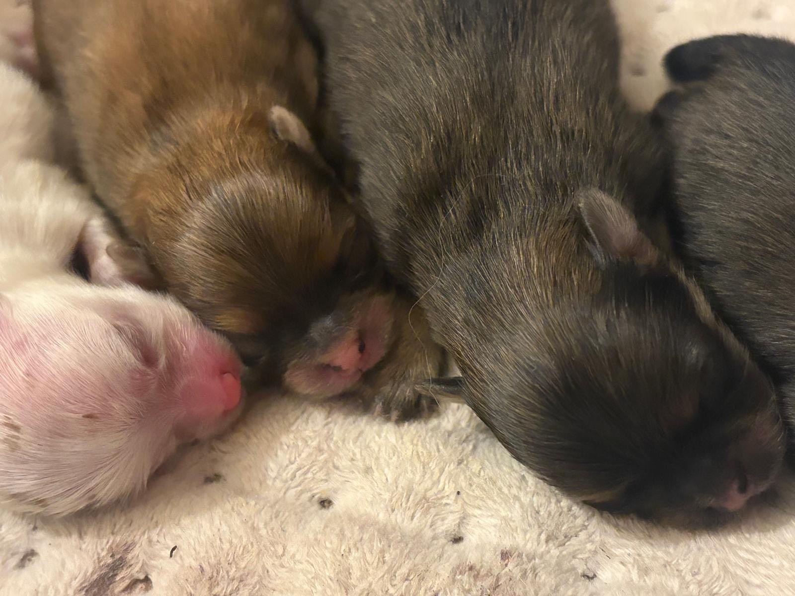 Pentuja meille syntyi 13.12.2025 neljä, alempana pari kuvaa nyt kun silmät ovat jo auki;
